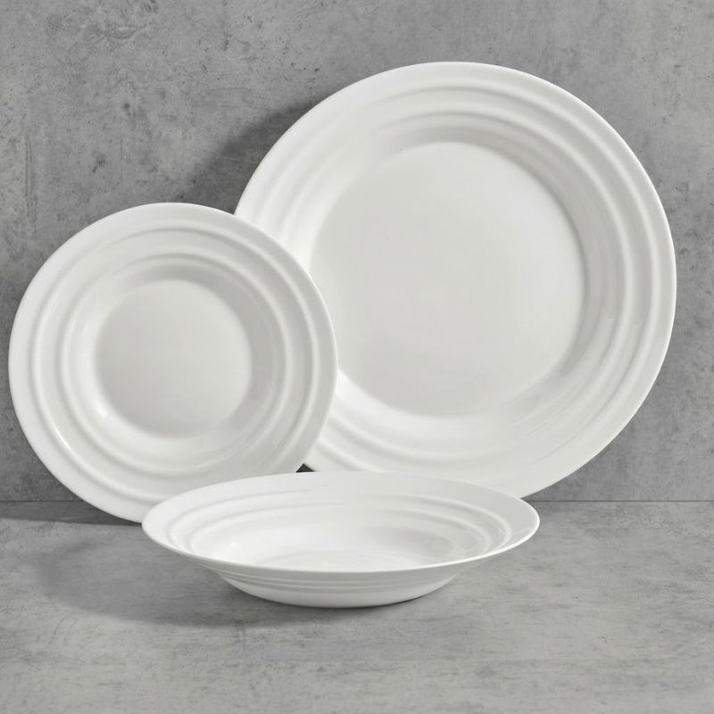 Čistá súprava riadu z bieleho opálového skla, ktorá je perfektnou voľbou pre každodenné použitie aj pre slávnostné stolovanie. Jemný vlnový vzor dodáva stolu moderný vzhľad, čím je súčasne praktickým aj estetickým riešením.