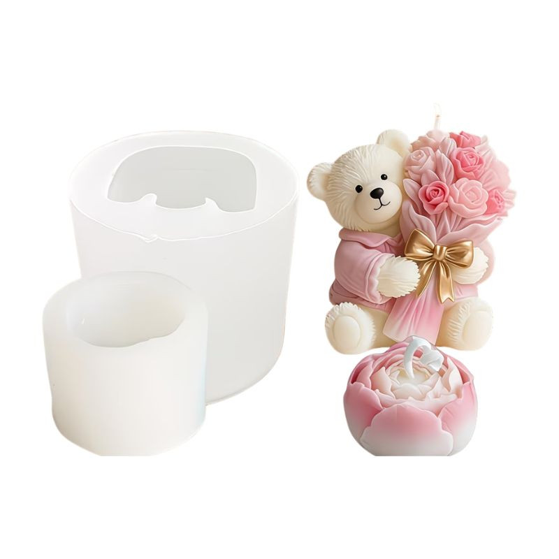 2-dielna sada 3D silikónových foriem – ružový medvedík a ružová hlava – na výrobu sviečok a mydiel LU13051716