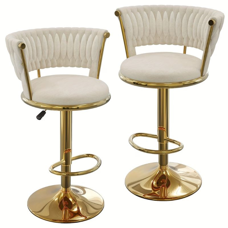 Sada barových stoličiek s prémiovým vzhľadom, ktorá je perfektnou voľbou do moderných kuchýň, k barovým pultom alebo do kaviarní. Kombinácia krémového, mäkkého čalúnenia a zlatého kovového rámu vytvára exkluzívny, luxusný dojem.