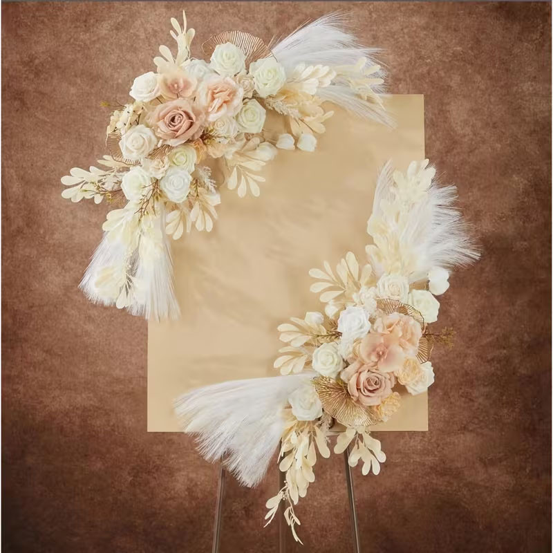 Vytvorte romantickú atmosféru blízku prírode vo vašej svadobnej výzdobe s týmto 2-dielnym vencom z umelých kvetov, ktorý je ideálny na zdobenie väčších slávnostných pozadí, priestorov na obrady alebo fotosten v štýle boho. Bežová farebná paleta sa elegantne hodí k mnohým dekoratívnym motívom, pričom umelé kvety ponúkajú trvácne a opakovane použiteľné riešenie.