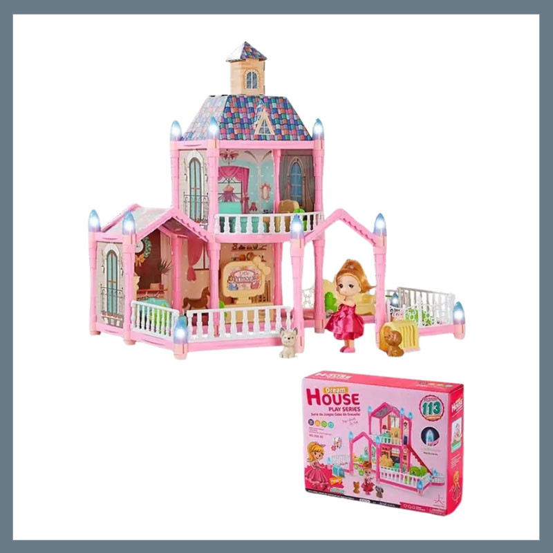 Kúzelný ružový domček snov pre malé princezné! S krásnymi detailmi, osvetlenými vežami a bohatým príslušenstvom tento 2-poschodový domček pre bábiky zabaví deti na celé hodiny a zároveň rozvíja ich fantáziu a schopnosti hrať sa na rôzne úlohy.