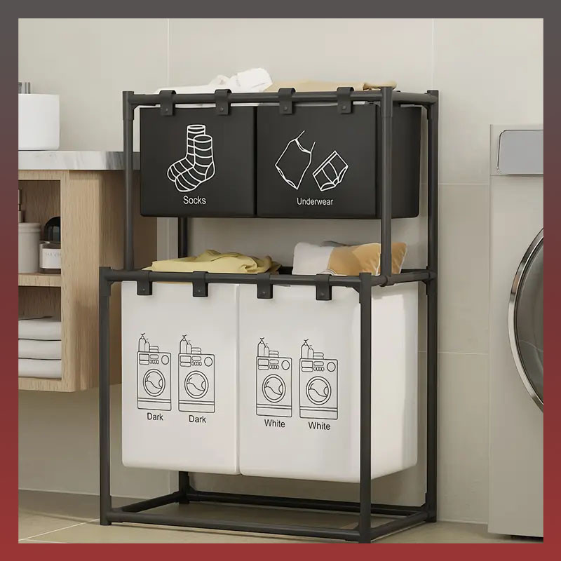 Tento 2-poschodový skladací kôš na bielizeň je praktické a priestorovo úsporné riešenie pre každodenné domáce práce. Jeho výnimočnosťou je dvojposchodové prevedenie, ktoré umožňuje triedenie oblečenia (napríklad farebné/biele alebo čisté/špinavé), pričom zaberá minimum miesta.