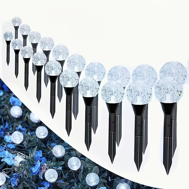 Vytvorte si príjemnú atmosféru vo vašich nociach s touto 20-dielnou sadou solárnych záhradných krištáľových svietidiel! Tieto lampy nielen svietia, ale slúžia aj ako štýlová dekorácia vo vašej záhrade, na terase alebo dokonca na podujatiach.