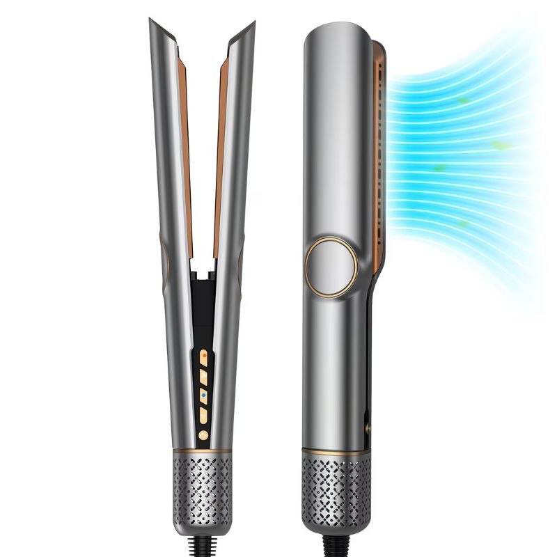 Tento moderný 2 v 1 nástroj na úpravu vlasov kombinuje funkciu fénu a vlasovej žehličky, čím umožňuje rýchlu a efektívnu úpravu vlasov. Vysokorýchlostný prúd vzduchu a presná regulácia teploty pomáhajú rýchlo vysušiť a narovnať vlasy bez toho, aby došlo k nadmernému poškodeniu teplotou.