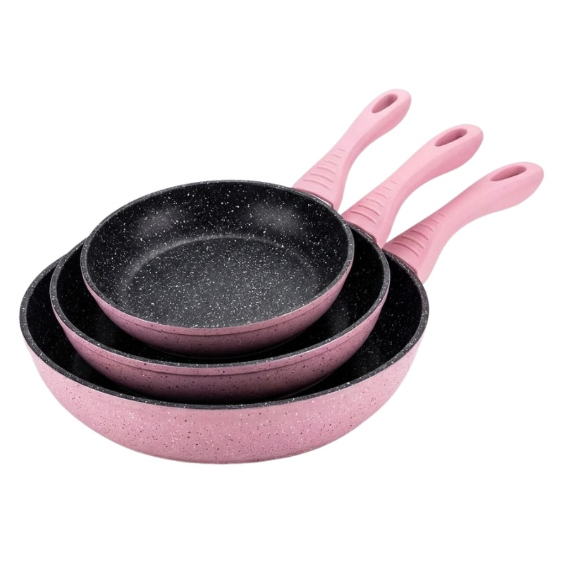 Moderná sada panvíc s mramorovým povrchom na každodenné varenie. Vďaka nepriľnavému povrchu a rovnomernému rozloženiu tepla je ideálna na vyprážanie, pečenie a rýchle prípravu jedál. Sada obsahuje panvice rôznych veľkostí, vďaka čomu je flexibilná pre použitie s menšími aj väčšími porciami.