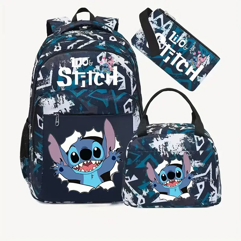Táto veselá sada školských tašiek s motívom Stitch je ideálnou voľbou pre deti, teenagerov alebo fanúšikov. Trojdielna sada obsahuje veľký batoh, praktickú tašku na desiatu a puzdro na ceruzky so zipsom, všetko vyrobené z ľahkého, odolného materiálu s jednotným dizajnom.