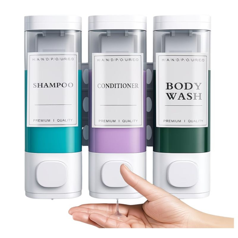 Táto praktická sada dávkovačov do kúpeľne obsahuje tri samostatné dávkovače tekutého mydla na montáž na stenu. Ideálne riešenie pre hygienické a prehľadné skladovanie šampónu, kondicionéru, sprchového gélu alebo tekutého mydla. Moderný čierny dizajn zaisťuje elegantný vzhľad a zároveň šetrí miesto v sprche alebo v okolí umývadla.