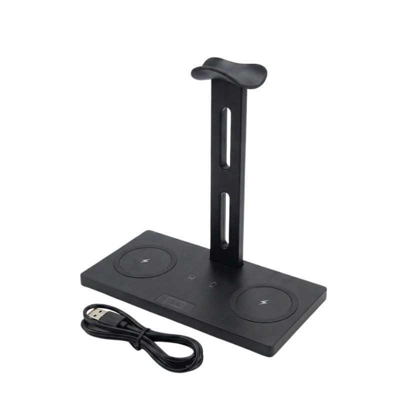 Už nikdy viac nebudeš hľadať nabíjacie káble alebo slúchadlá! Táto štýlová čierna 3 v 1 stanica kombinuje 15W bezdrôtovú rýchlonabíjačku a stabilný držiak na slúchadlá v jednom kompaktnom zariadení.