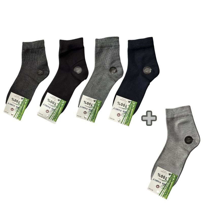 Praktické a výhodné akčné balenie 4+1, ktoré obsahuje 5 párov ponožiek z bambusového vlákna. Ponožky sú vyrobené z mäkkého a pružného materiálu a vďaka bezšvovému vyhotoveniu poskytujú pohodlné nosenie počas celého dňa. Bambusové vlákno má prirodzene dobrú savosť a priedušnosť, preto je ideálnou voľbou na každodenné používanie.