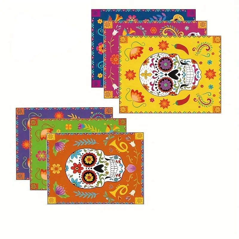 6-dielna sada farebných prestieraní na stôl motív Cukrová lebka 601099717505845