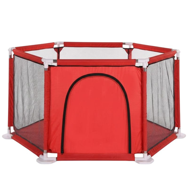 6-uholníkový detský ohrádka so sieťovanými bočnicami, červená BW-003