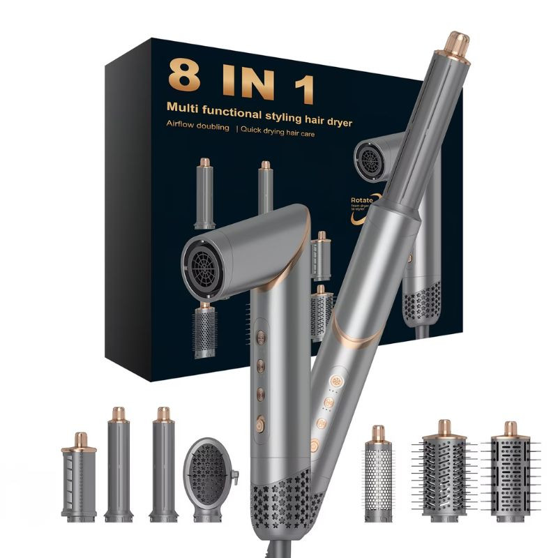 Táto univerzálna sada na úpravu vlasov 8 v 1 je ideálnym riešením pre každodennú úpravu vlasov. S jediným prístrojom môžete ľahko vysušiť, narovnať, natočiť alebo zväčšiť objem svojich vlasov. Vysokorýchlostný prúd vzduchu zabezpečuje rýchle sušenie, zatiaľ čo pokročilá iontová technológia pomáha znížiť krepatenie vlasov a zachovať ich prirodzený lesk.