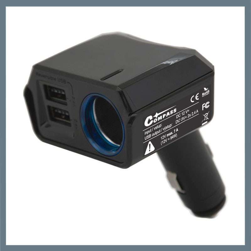 Adaptér do auta – 2× USB DUAL-SIDE + 12 V výstup, 2400 mA 07431