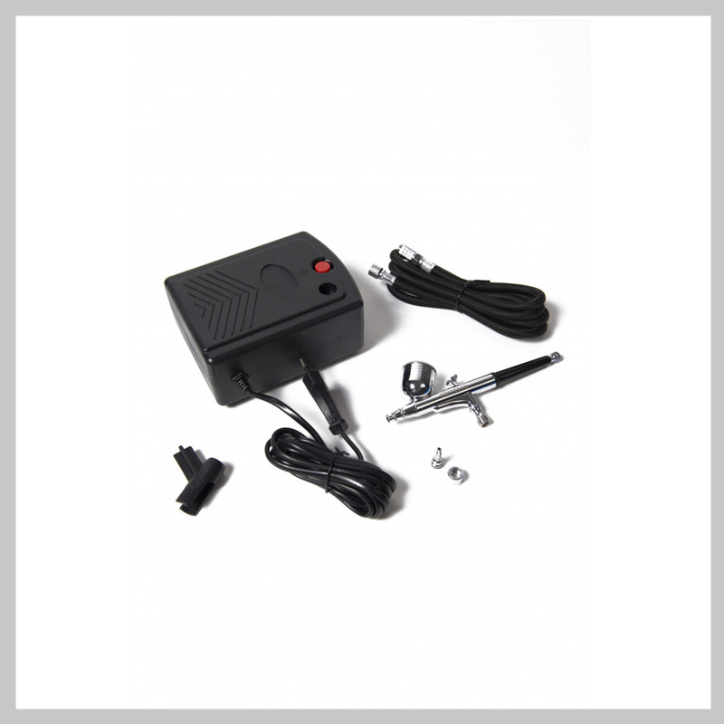 Kompletná mobilná airbrush sada s dvojčinnou pištoľou a gravitačným plnením. Tento set je ideálnym riešením pre precízne striekacie práce, ako sú modelárstvo, lakovanie detailov, zdobenie tort, maľovanie na telo (bodyart), nechtový dizajn, retušovanie fotografií či umelecké maľovanie na textil (T-shirt painting).