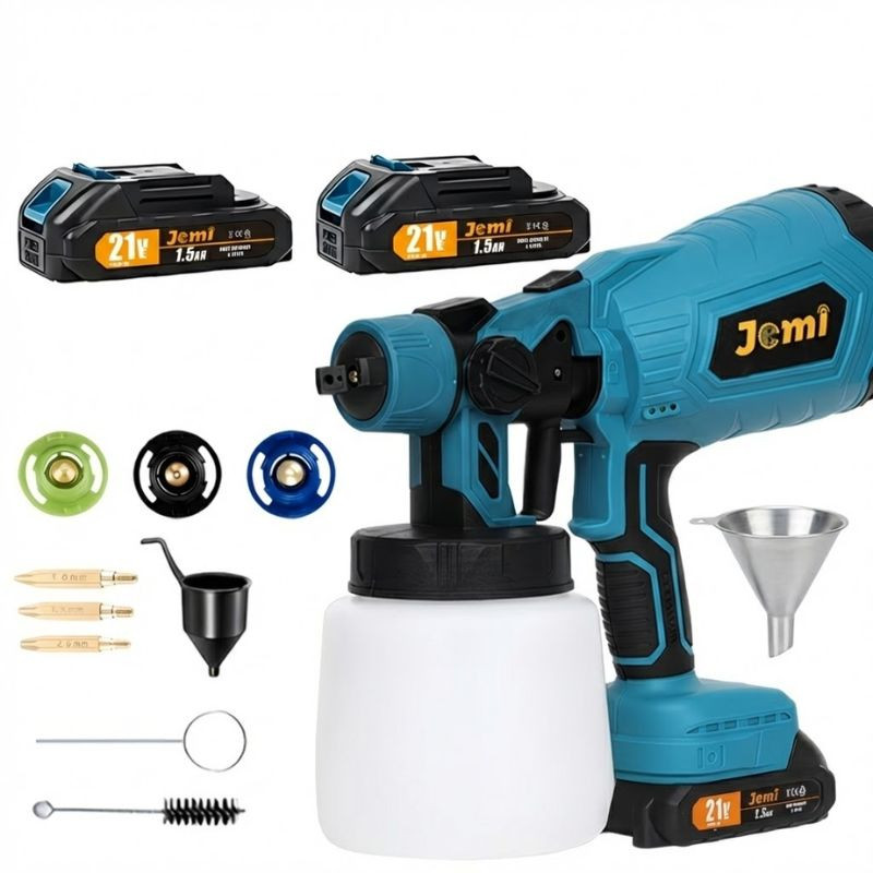 Táto výkonná striekacia pištoľ Jemi s motorom z čistého medi využíva modernú technológiu HVLP (High Volume Low Pressure) na efektívne a rovnomerné nanášanie farby. Vďaka akumulátorovému prevedeniu sa môžete zbaviť obmedzení spôsobených káblami, čo z neho robí ideálnu voľbu na rýchle a presné maľovanie stien, záhradných plotov alebo záhradného nábytku.