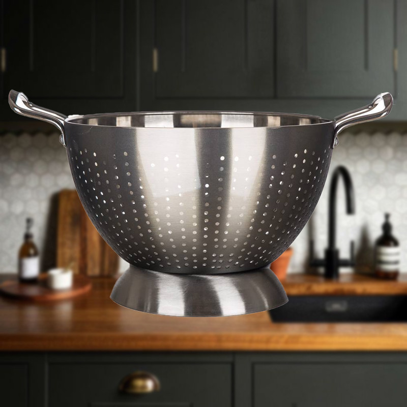 Cedník LATINO METALLIC PLATINUM má priemer 24 cm a je vyrobený z nehrdzavejúcej ocele s hrúbkou steny 0,45 mm a výškou 17,5 cm. Cedník je široko používaný v kuchyni, ľahko sa udržiava, je hygienický a odolný.