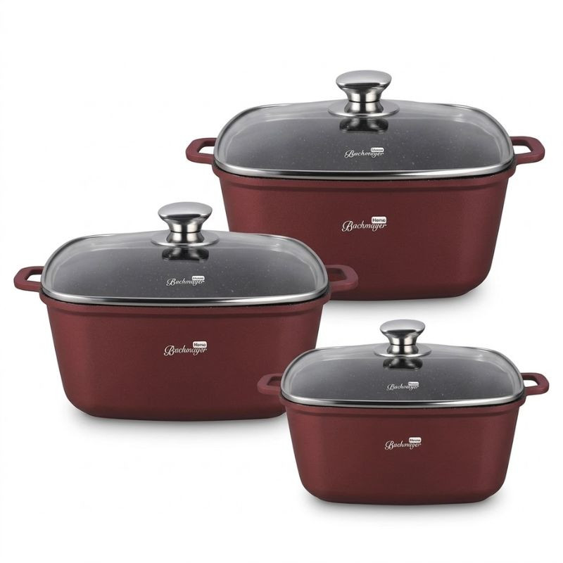 Táto prémiová 6-dielna sada riadu má elegantný bordový povrch, ktorý je ideálnou voľbou pre zdravé a nepriľnavé každodenné varenie
