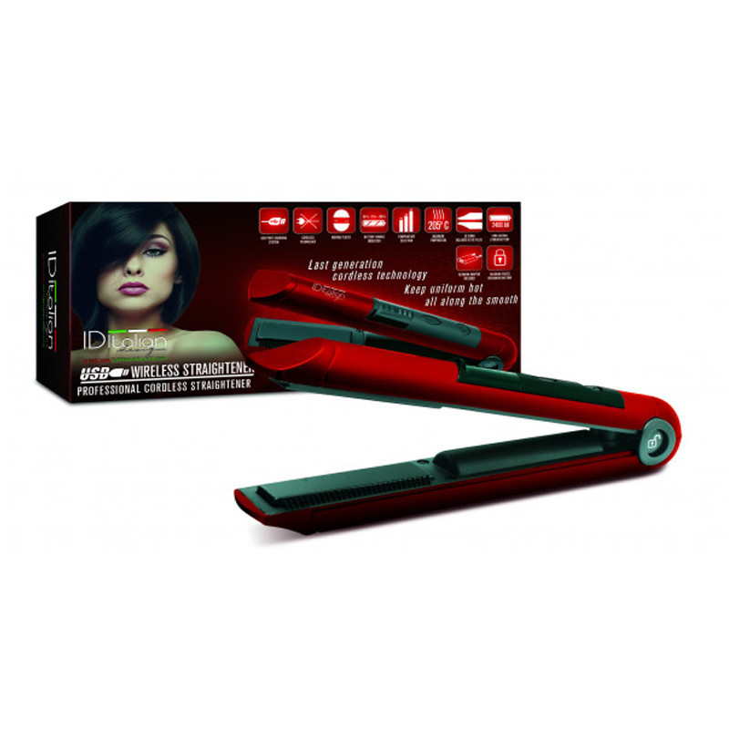 Malá profesionálna žehlička vhodná najmä na drobné práce ako je výroba ofiny. Hrebeň integrovaný do oboch dosiek umožňuje rozčesávanie vlasov a zároveň ich uhladzovať. Je možné ju používať bez kábla. Batéria vydrží 45 minút pri maximálnom výkone žehličky (205 °C). Je možné ju nabíjať cez USB porty pripojené k akémukoľvek zariadeniu. - Profesionálny design. - Keramické sklopné dosky. - Bezdrôtové - Nabíjanie cez USB port. - Maximálna teplota 205º. - Hrebeň integrovaný do dvoch fólií. - Systém zamykania / odomykania disku. - Displej batérie. - Volič výkonu (165 - 185-205º). - Doba použitia na maximálny výkon: 45 minút. - Doba nabíjania batérie: 2 hodiny 30 minút. - 18 W. - Hmotnosť: 165 gr. - Rozmery: 210 x 90 x 50 mm.