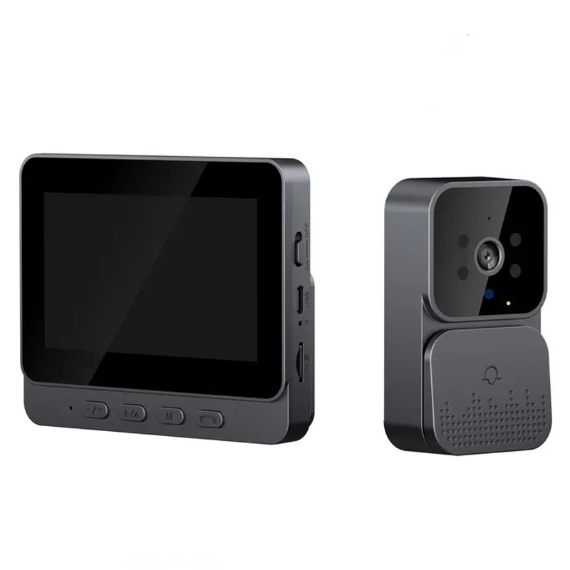 Bezdrôtové bezpečnostné zariadenie s jednoduchým párovaním na jedno dotknutie, ktoré nevyžaduje mobilnú aplikáciu. Súprava pozostáva z dvoch častí: vonkajšej jednotky (kamera a zvonček) a vnútornej jednotky s displejom.