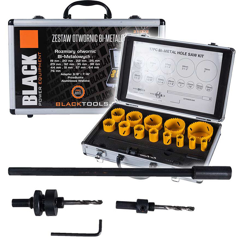 1 čierna dierová píla na kov a drevo 17-dielna sada dierových píl