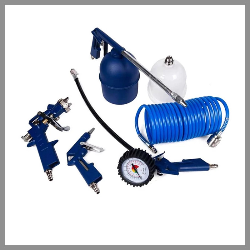 Balenie obsahuje aj hustilku pneumatík s tlakomerom, takže môžete kedykoľvek skontrolovať tlak v pneumatikách. Poslednou položkou v balení je 5 metrová pneumatická spirálová hadica, ktorú vďaka jej spirálovému dizajnu môžete uložiť na malú poličku. Pripojte ju ku kompresoru a máte všetko, čo potrebujete na perfektné vykonanie vyššie uvedených prác.