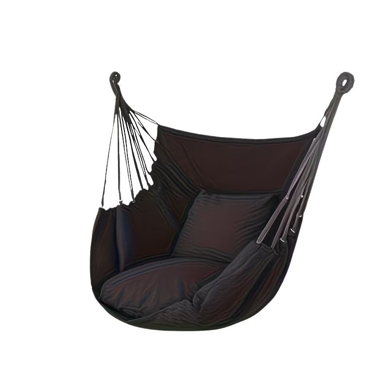 Táto tmavohnedá, takmer čierna závesná stolička dodáva záhrade alebo terase elegantný a prirodzený vzhľad. Tmavá farba je mimoriadne praktická pre vonkajšie použitie, pretože na nej menej vidno vplyvy okolia. Robustné nosné laná zaručujú bezpečné zavesenie, či už ide o konár stromu počas kempovania alebo pevný stojan na dvore.