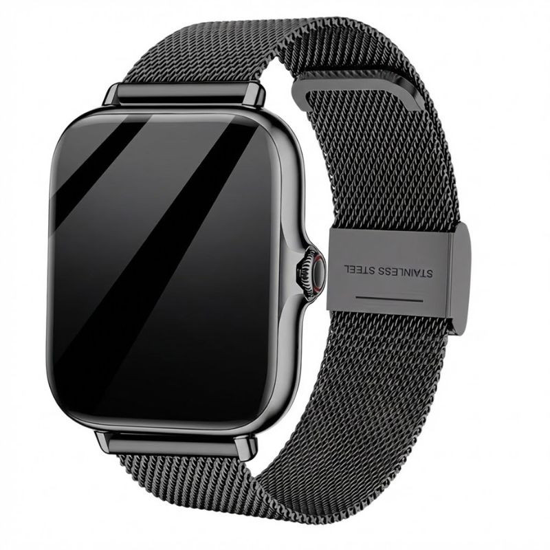 Čierne inteligentné hodinky ERUN sú univerzálnym doplnkom na každodenné použitie. Tmavý kovový remienok a čierne puzdro hodiniek poskytujú impozantný, ale zároveň decentný vzhľad, ktorý sa hodí ku každému outfitu. Čierny silikónový remienok zadarmo, ktorý je súčasťou sady, je ideálnou voľbou do posilňovne alebo na outdoorové športy, kde je pohodlie na prvom mieste.
