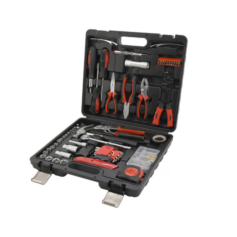 Kufor s kvalitným náradím a základným spojovacím materiálom je nevyhnutným pomocníkom v každej domácnosti a dielni. Tento praktický kufor obsahuje všetko, čo je potrebné na menšie domáce opravy a úpravy. Súprava obsahuje ergonomické skrutkovače, imbusové kľúče, žiletkový nôž, najbežnejšie typy klieští vrátane elektrikárskych, kladivo, 3/8" račňu s bitmi, LED baterku, skrutkovač na bity, skrutkovač s 20 bitmi, 5 m meraciu pásku, izolačnú pásku a ďalšie. Súprava okrem iného obsahuje aj kufor a 92 kusov spojovacieho materiálu. Všetko príslušenstvo je prehľadne uložené v plastovom kufríku s rozmermi 38 x 34 x 8 cm.