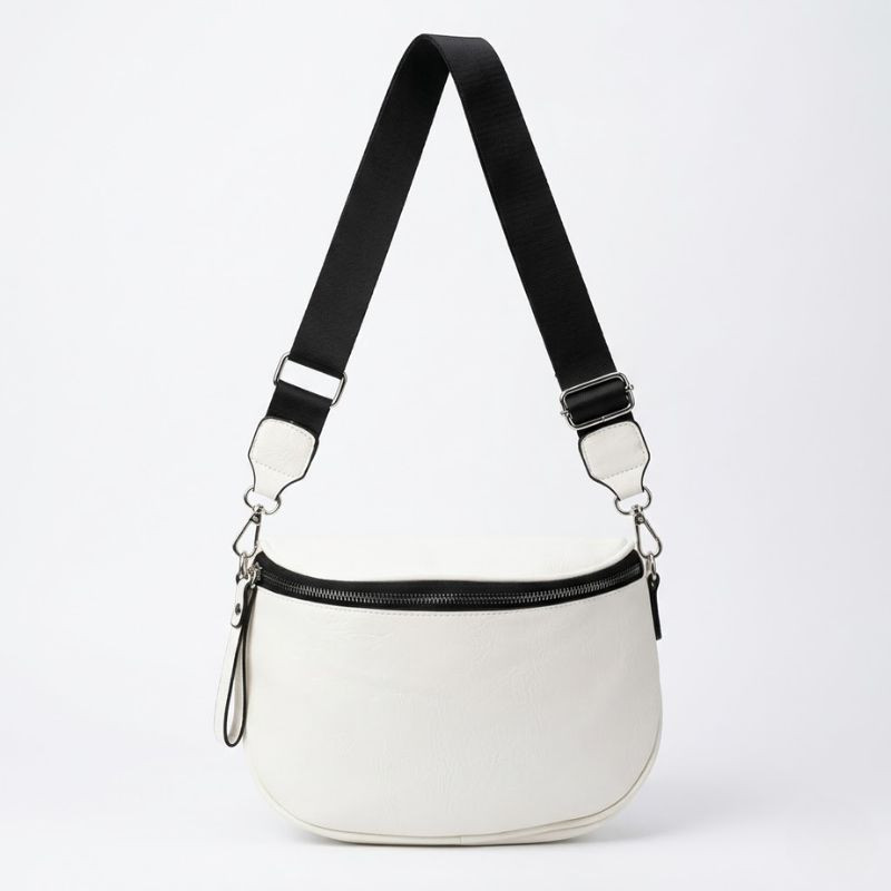 Dámska bočná taška so širokým ramenným popruhom - biela Taška-015
