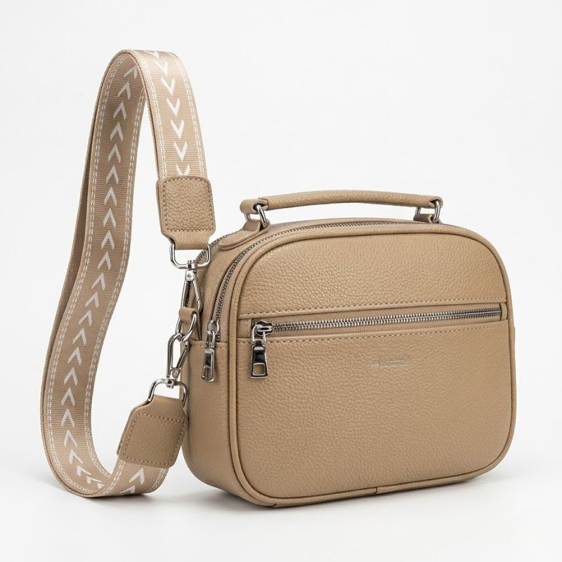 Dámska bočná taška so širokým vzorovaným popruhom – béžová Taška-011