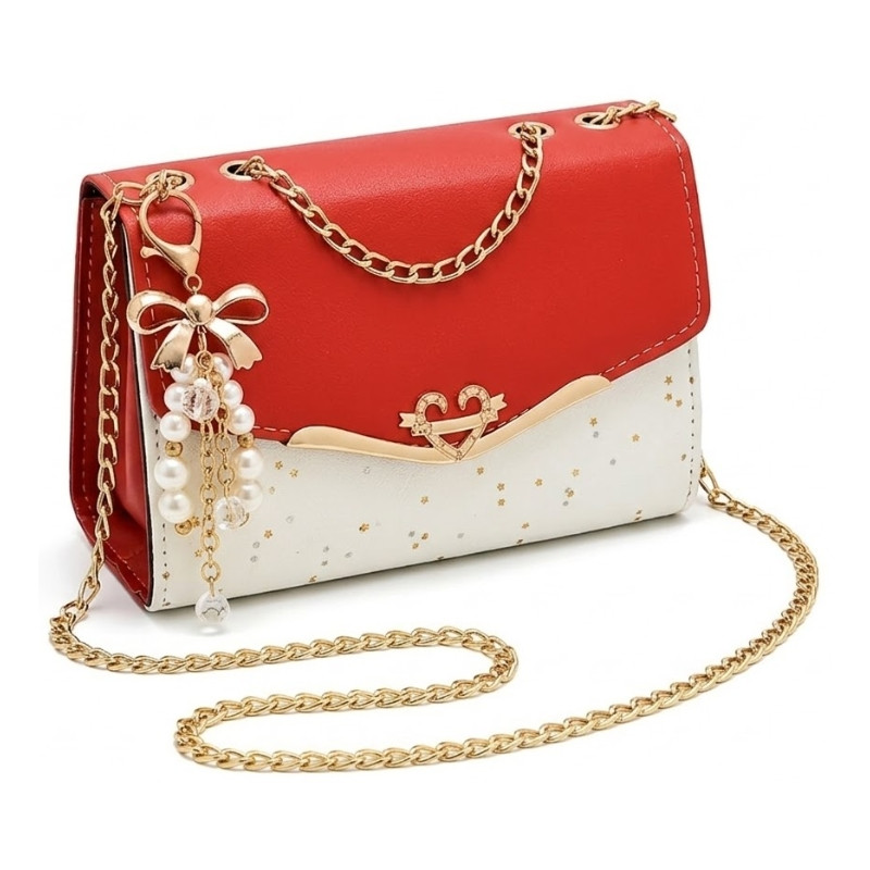 Dámska taška cez rameno s reťazovým popruhom – Červená HF2434596
