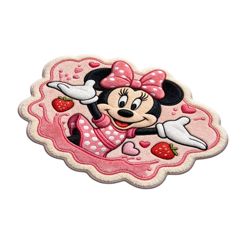 Tento rozkošný koberec nepravidelného tvaru prináša do vášho domova jednu z najobľúbenejších postavičiek Disney, Minnie Mouse, v naozaj roztomilom a veselom šate. V centre kreatívneho dizajnu stojí usmievajúca sa Minnie, ktorú obklopujú srdiečka a šťavnaté jahody. Svojimi živými farbami a hravým tvarom môže byť perfektným doplnkom detskej izby, ale ako praktická protisklzová podložka sa osvedčí aj v kúpeľni alebo v kuchyni.