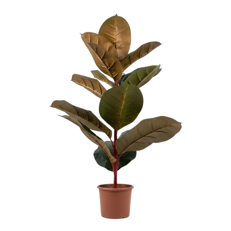 Moderná a elegantná umelá fikusová rastlina, ktorá dodá prirodzený dojem každej miestnosti bez nutnosti starostlivosti. Veľké, detailne prepracované listy a charakteristická červenkastá stonka zaisťujú jedinečný vzhľad, vďaka čomu môže byť výnimočnou ozdobou vášho domova alebo kancelárie.