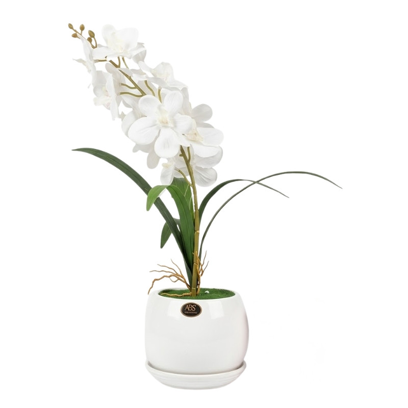 Dekoratívna umelá orchidea v kvetináči s bielymi kvetmi ORCH1