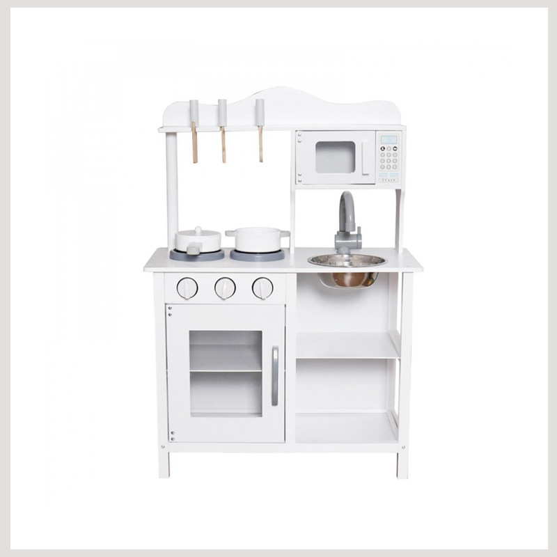 Súprava obsahuje mikrovlnnú rúru, ktorú možno otvárať a zatvárať, ktorá deťom umožňuje simulovať ohrievanie jedla, odnímateľný drez s kohútikom pre autentický zážitok z varenia a umývania, police na odkladanie kuchynského riadu a príslušenstva, ako aj 3 hrnce a 2 panvice, z ktorých jedna má pokrievku.