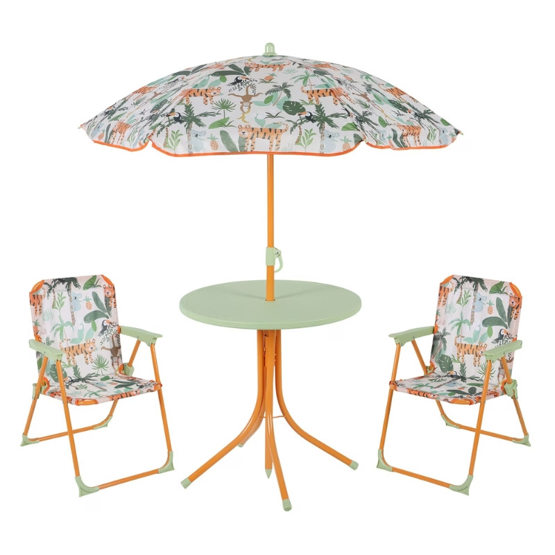 Potěšte svoje deti touto praktickou a roztomilou sadou na sedenie. Milé vzory zvieratiek očaria chlapcov aj dievčatá. Pri stole si deti môžu hrať, piknikovať alebo oddýchnuť po hre, zatiaľ čo slnečník poskytuje príjemný tieň v horúcich letných dňoch.