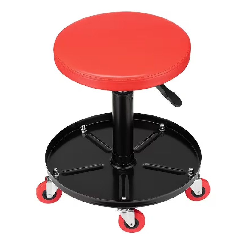 Praktická a odolná dielenská stolička, ktorá je ideálna na opravy áut, práce v garáži alebo domáce majstrovanie. Pohodlná, polstrovaná sedacia plocha a nastaviteľná výška zabezpečujú správnu pracovnú polohu, zatiaľ čo kolieska umožňujú ľahký pohyb.