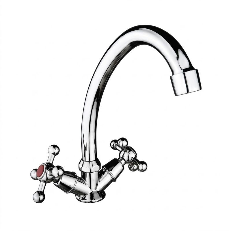 Dve samostatné ovládacie gombíky umožňujú presné regulovanie studenej a teplej vody. Klasický dizajn s krížovou rukoväťou je nielen praktický, ale dodáva kuchyni aj dekoratívny vzhľad.