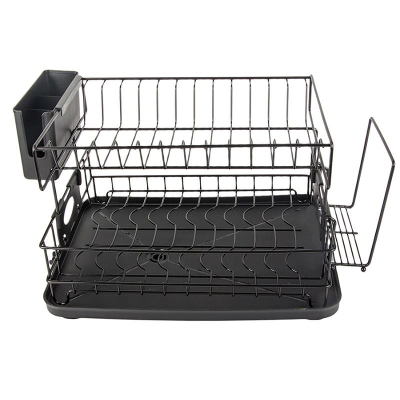 Skoncujte s vodou a neporiadkom na kuchynskej linke vďaka tomuto mimoriadne praktickému a elegantnému dvojposchodovému sušiaku na riad v čiernej farbe! Vďaka priestrannému poschodovému dizajnu sa naň zmestí množstvo tanierov, pohárov a misiek, takže aj v tých najmenších kuchyniach môžete maximalizovať využitie priestoru.