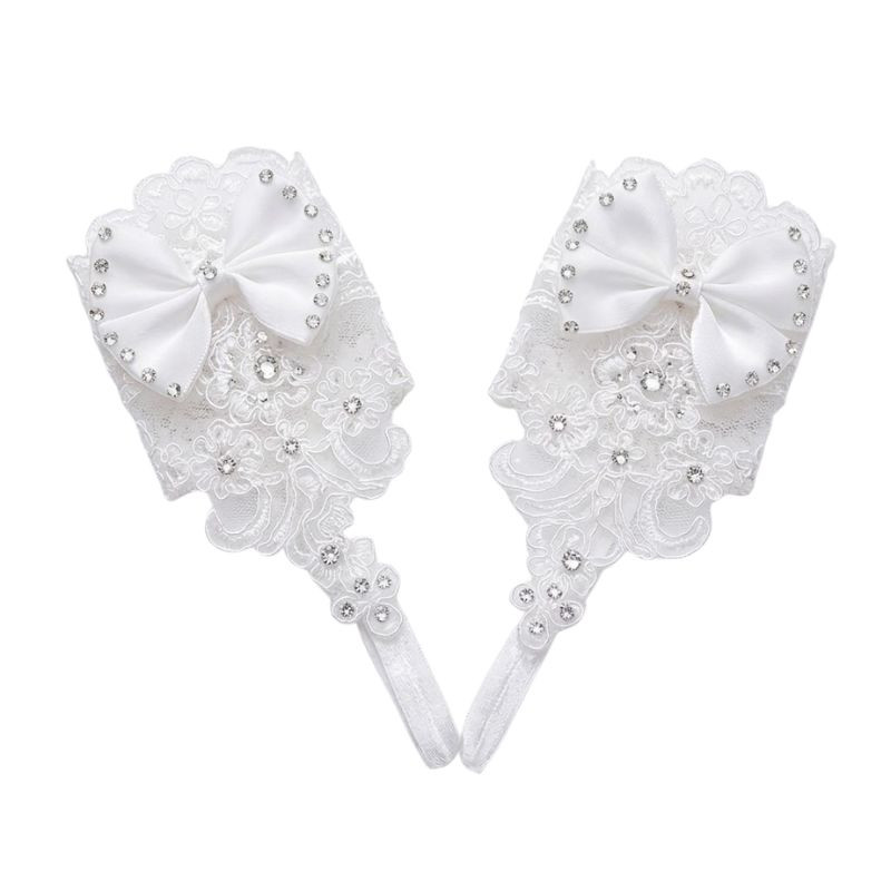 Urobte tento veľký deň ešte nezabudnuteľnejším s týmito rafinovanými a romantickými svadobnými rukavicami. Tento doplnok bez prstov je vyrobený z jemnej bielej čipky, zdobený drobnými, trblietavými kamienkami a elegantnou saténovou mašľou. Bezprstový strih rukavíc umožňuje, aby prst s prsteňom zostal počas obradu voľný, zatiaľ čo slučka na prostredníku zaisťuje stabilné a pohodlné nosenie. Tento doplnok, ktorý sa hodí aj ako šperk, dokonale dopĺňa svadobné šaty a dodáva nositeľke klasickú eleganciu tak pri svadobnom fotení, ako aj počas obradov.
