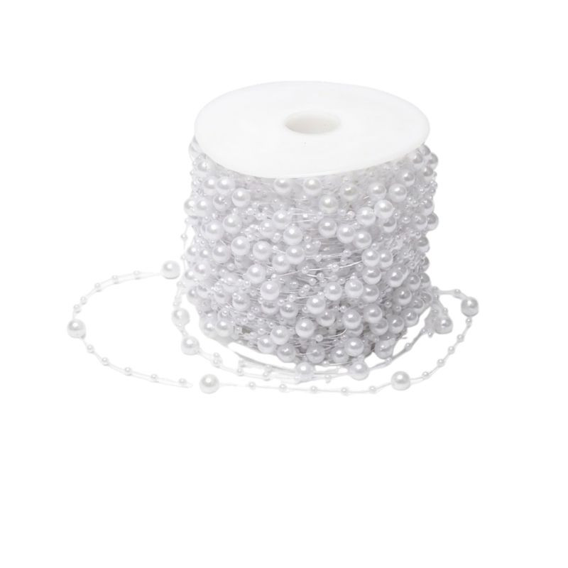 Elegantný biely reťazec z umelých korálok – 5 m dekoratívny reťazec z korálok TJ8336187