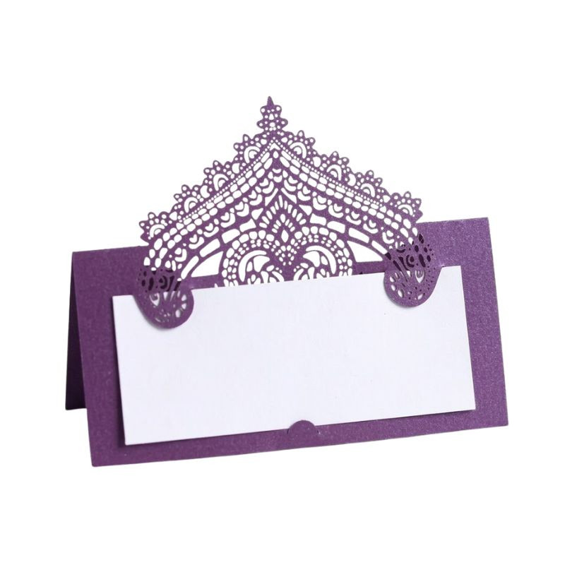 Dodajte stolným dekoráciám štipku šarmu a romantiky s týmito krásnymi fialovými laserovo rezanými menovkami. Jemné motívy motýľov a teplé tóny sú ideálne na svadby, narodeniny a oslavy narodenia dieťaťa. Hladký povrch kariet umožňuje ľahké a čisté písanie.