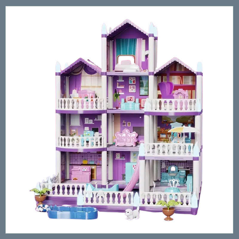 Fialový domček pre bábiky – 3 poschodia, 13 izieb YN2543709