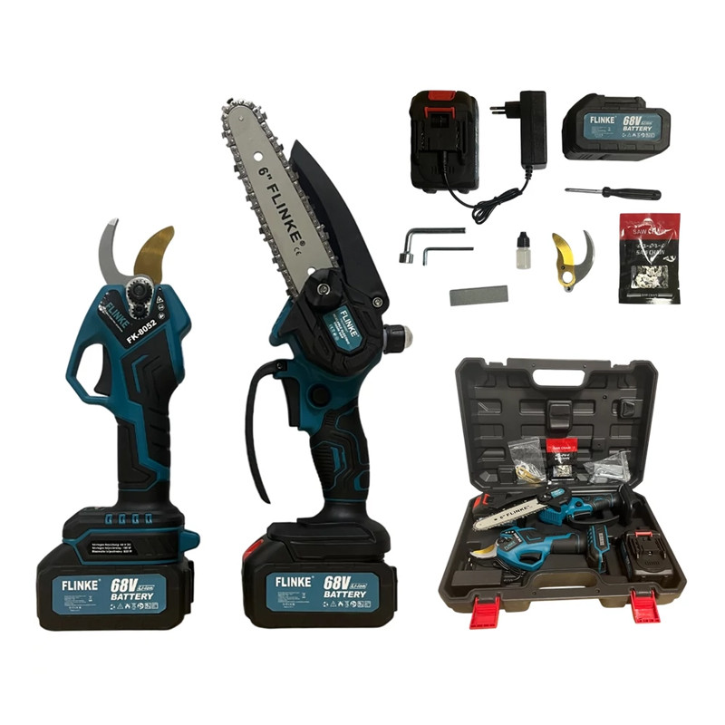 Súprava Flinke FK-8053 Akuové nožnice na strihanie a reťazová píla je vynikajúco kombinovaná sada, ktorá obsahuje aku nožnice na strihanie a aku reťazovú pílu Flinke, čo umožňuje vykonávanie širokej škály záhradných prác. Táto súprava je ideálnou voľbou pre tých, ktorí chcú uľahčiť a zabezpečiť záhradnícke práce, najmä počas rezacieho obdobia v ovocných sadoch a záhradách.