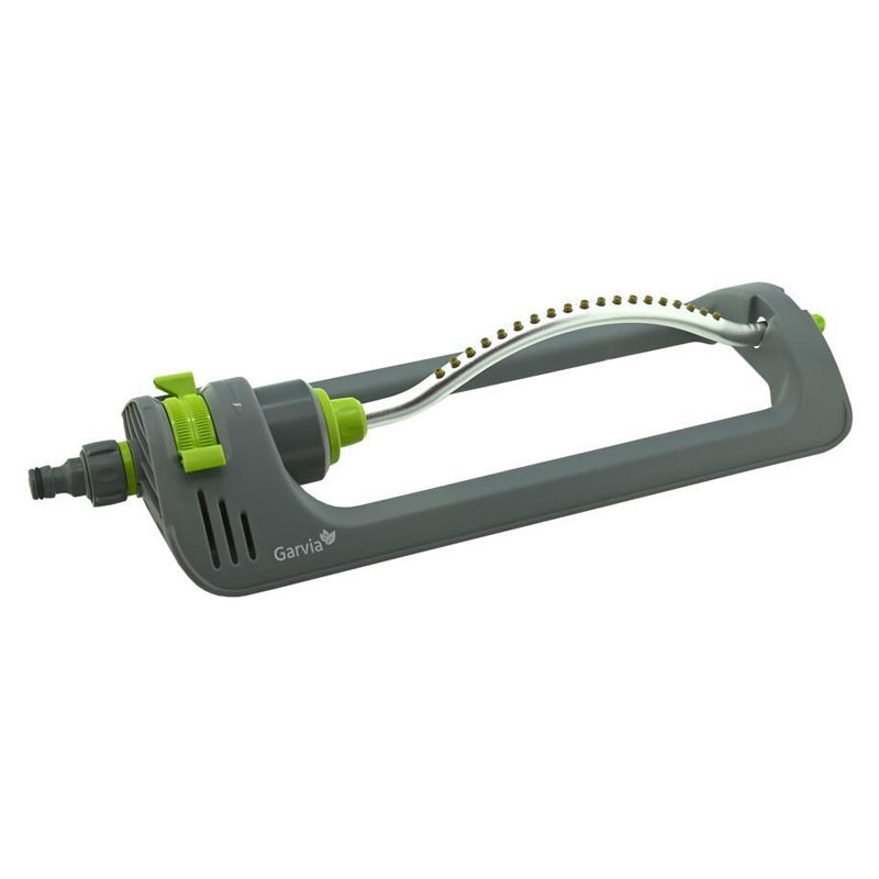 Voľne stojaci záhradný zavlažovač, ktorý je ideálny na rovnomerné zavlažovanie väčších plôch. Ohnutá tyč je vybavená 19 dýzami a po pripojení vody sa kýva do strán, vďaka čomu dokáže pokryť plochu až do 220 m². Kývavý pohyb je možné nastaviť pomocou regulátorov (dorazov) umiestnených v hornej časti.