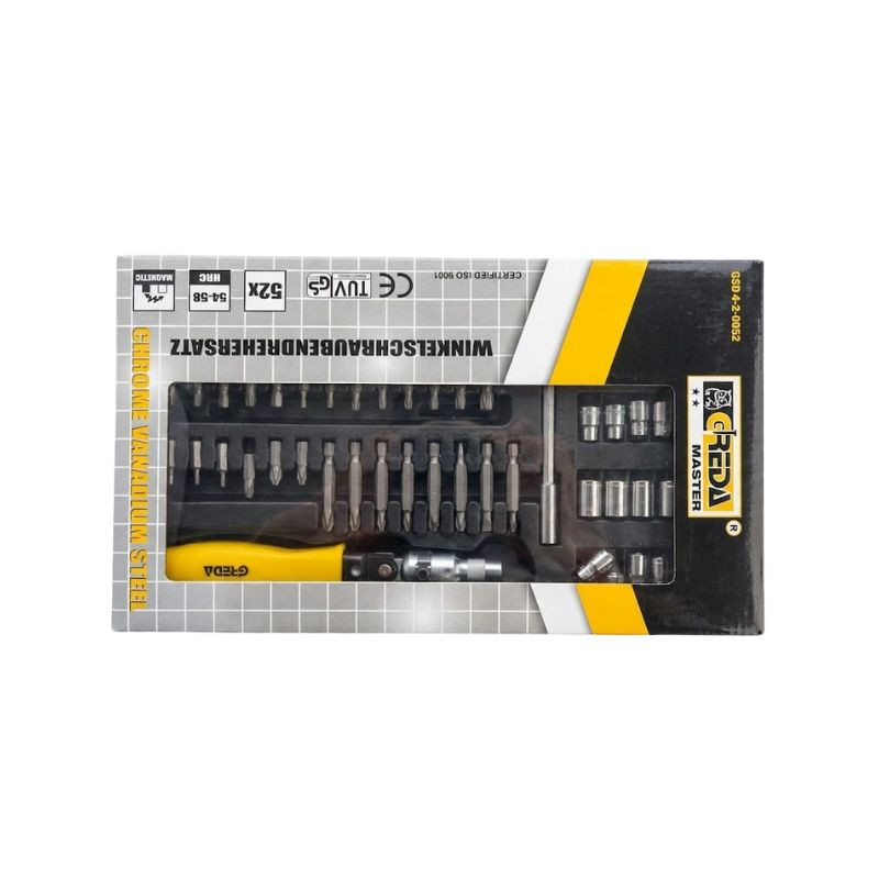 GREDA MASTER 52 dielna sada račňového kĺbového skrutkovača a bitov GSD4-2-0052