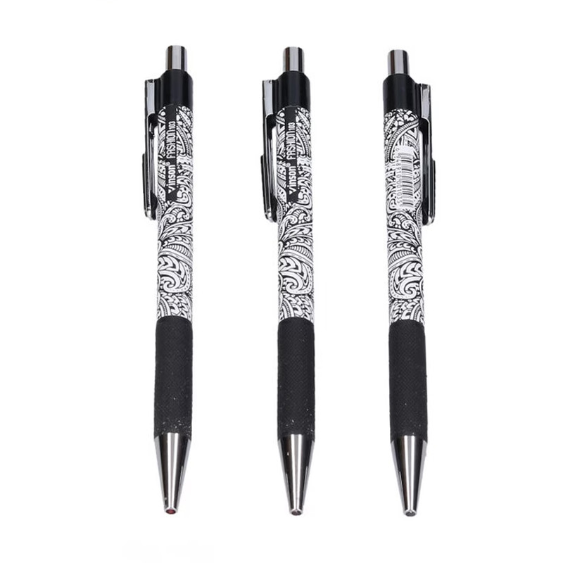 Guličkové pero s modrou náplňou. Hrúbka hrotu: 0,7 mm. Čierno-biely dizajn.