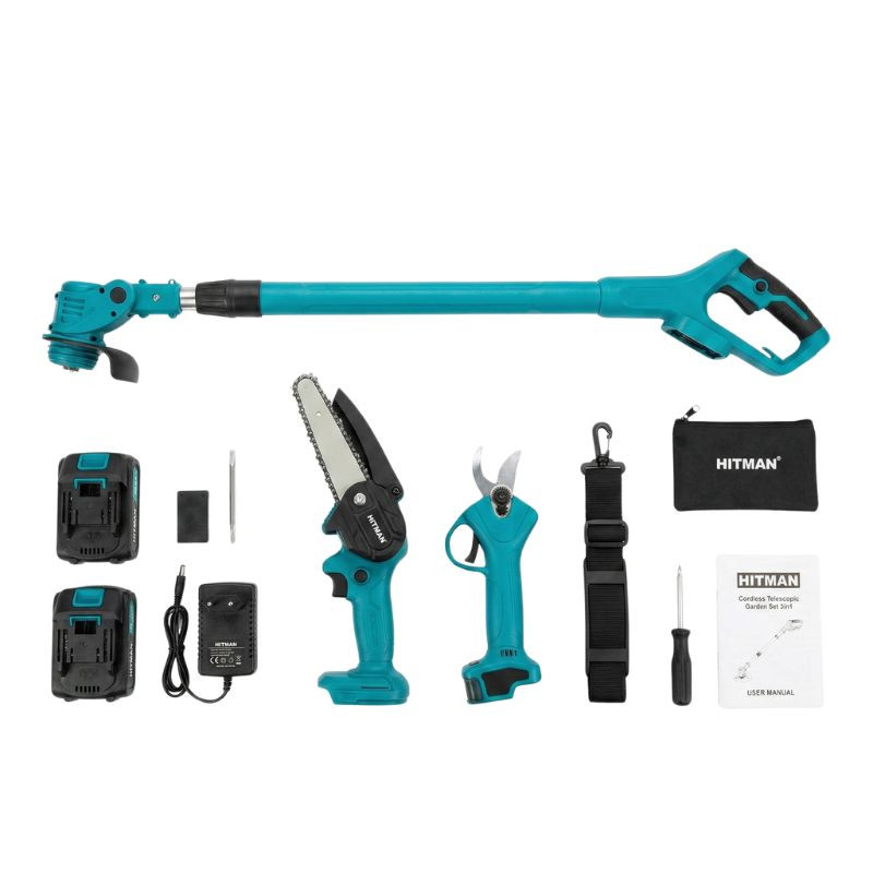 Táto všestranná sada HITMAN uľahčuje záhradné práce tým, že spája tri funkcie v jednom balení. Základom je akumulátorový systém, ku ktorému sa pripája mini reťazová píla aj výkonné akumulátorové nožnice. Vďaka teleskopickej tyči sa náradie dá používať nielen v ruke, ale aj ako výškový odvetvovač, takže sa dostanete k vyšším konárom bezpečnejšie aj bez rebríka.