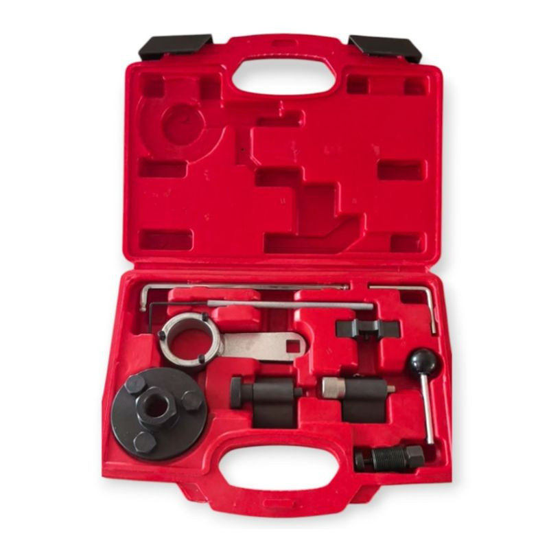Presné upevnenie: Sada obsahuje všetky potrebné upevňovacie prvky (blokovanie vačkových hriadeľov, polohovanie kľukového hriadeľa atď.) pre stabilné a presné zablokovanie rotujúcich častí motora v továrenských polohách. To zabezpečuje správne časovanie ventilov.