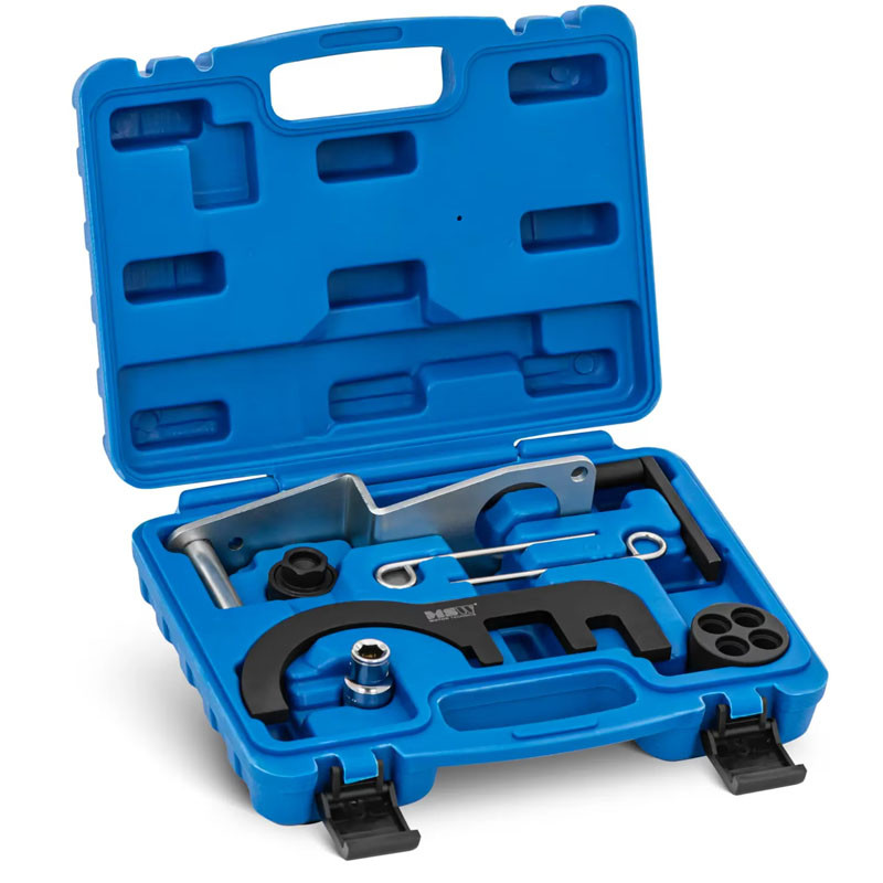 Upínací sadu rozvodov pre motory BMW N47, N47S a N57 je špeciálny nástroj, ktorý je potrebný na presné nastavenie a upevnenie rozvodov pri opravách a údržbe. Sada umožňuje upevnenie kľukového hriadeľa, rozvodového hriadeľa (hriadeľov) a ďalších časovacích prvkov v pôvodnej polohe, čím zabezpečuje presnú a bezpečnú montáž.